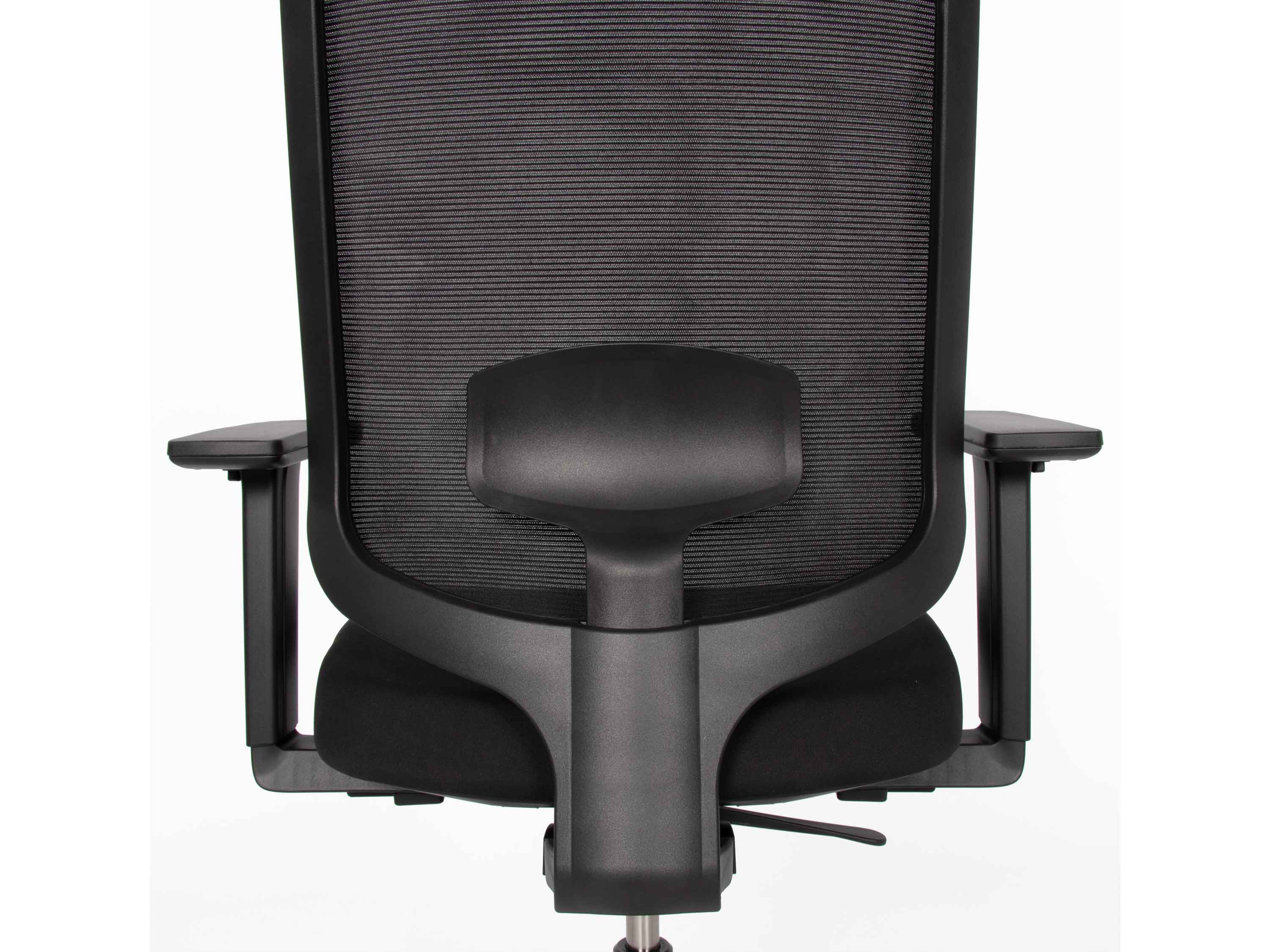 - Rugleuning van gaas: grafietzwart (RAL 9011) met geïntegreerde lendensteun, comfortabel gestoffeerd, traploos in hoogte verstelbaar over 60 mm